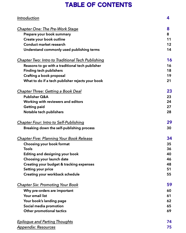 makes publishing a book an attainable goal. You'll learn about the tech publishing landscape and the considerations all would-be authors need to keep in mind to go from ideation to getting published.Â